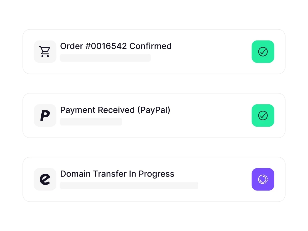 Sell and manage domains effortlessly with Enom, OpenSRS, GoDaddy, Realtime Register, ResellerClub, and other top registrars from one place without switching between platforms. New integrations are added regularly, giving you access to more and more TLDs.